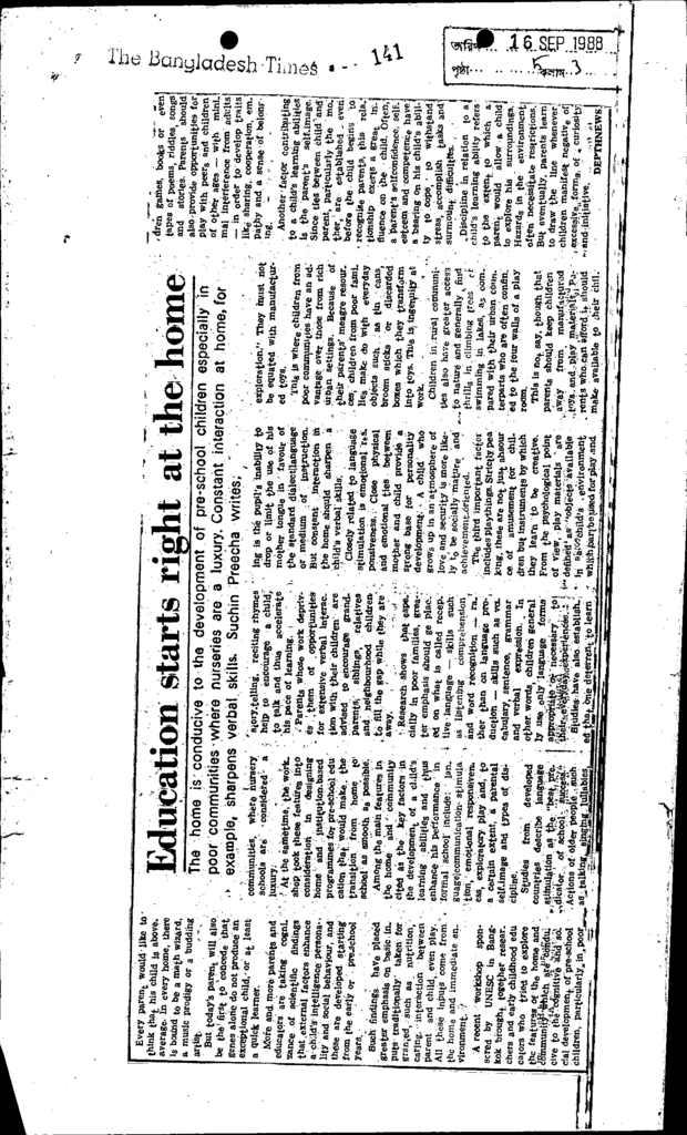 Education starts right at the home Published on Newspaper The Bangladesh Times Category Admission / Seat Problem Admission/Seat Problem Download