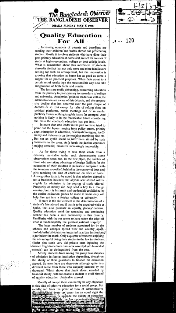 Quality education for all Published on Newspaper The Bangladesh Observer Category Admission / Seat Problem Admission/Seat Problem Download