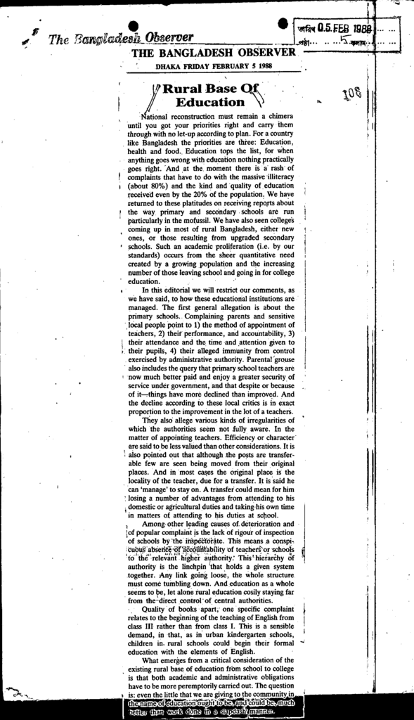 Rural base of education Published on Newspaper The Bangladesh Observer Category Admission / Seat Problem Admission/Seat Problem Download