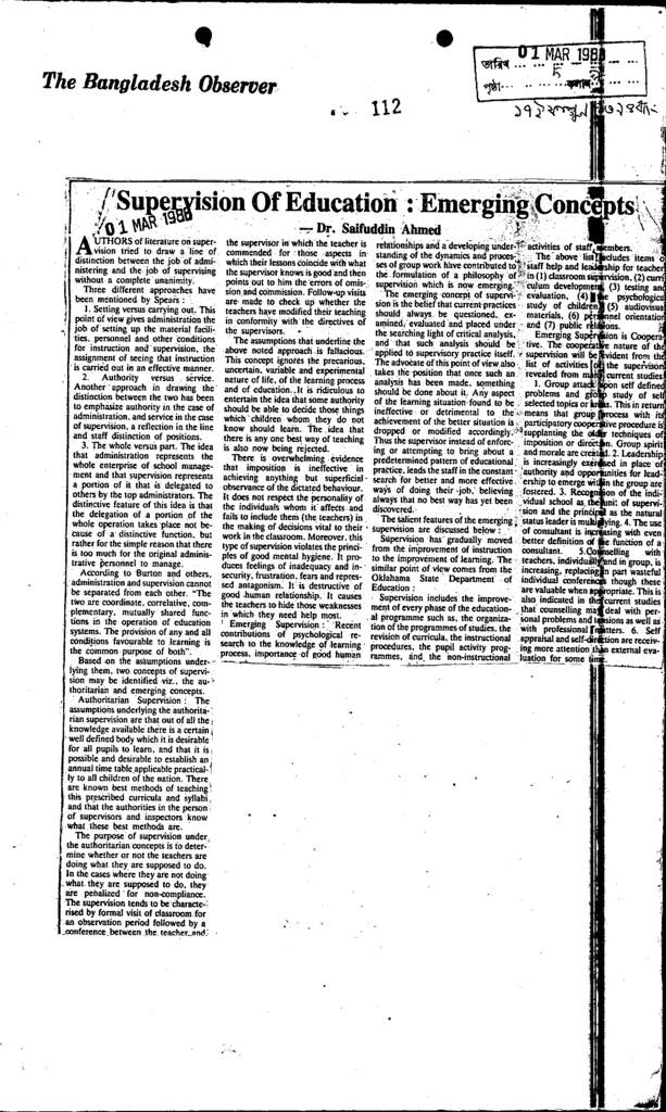 Supervision of education: emerging concepts Published on Newspaper The Bangladesh Observer Category Admission / Seat Problem Admission/Seat Problem Download