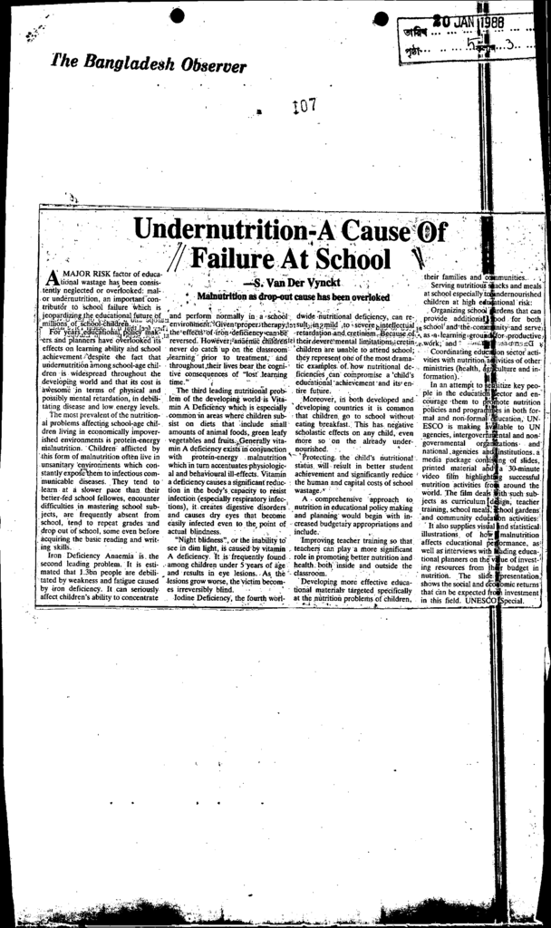 Undernutrition-a cause of failure at school Published on Newspaper The Bangladesh Observer Category Admission / Seat Problem Admission/Seat Problem Download