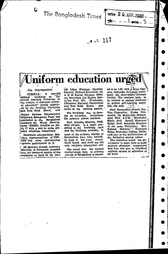 Uniform education urged Published on Newspaper The Bangladesh Times Category Admission / Seat Problem Admission/Seat Problem Download