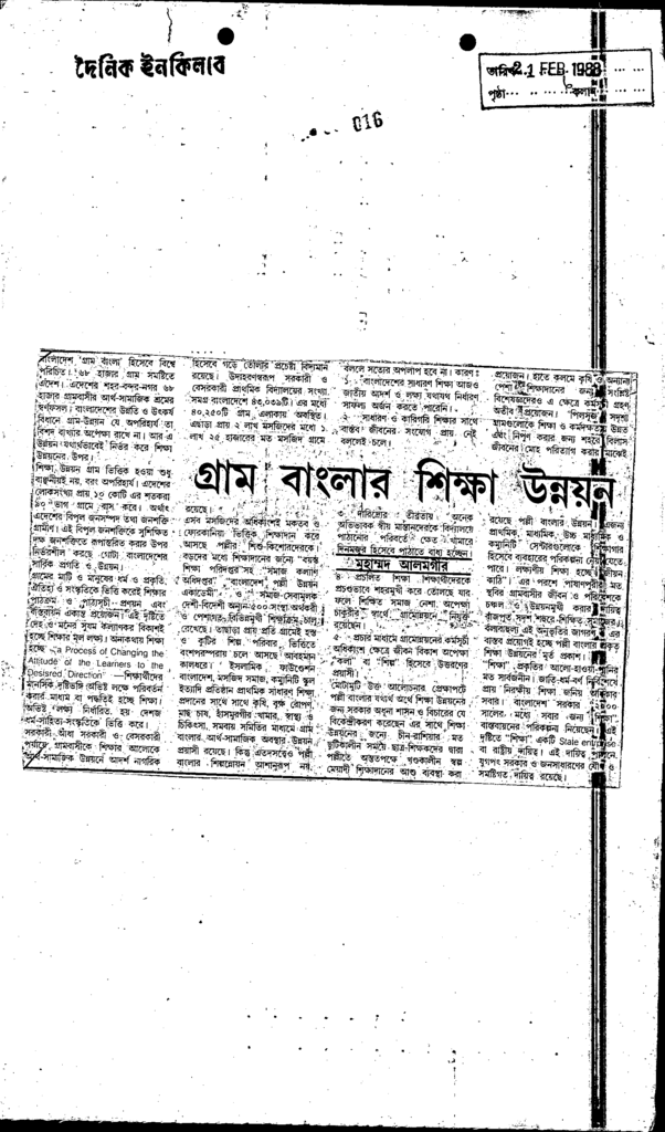 গ্রাম বাংলার শিক্ষা উন্নয়ন Published on Newspaper দৈনিক ইনকিলাব Category Admission / Seat Problem Admission/Seat Problem Download