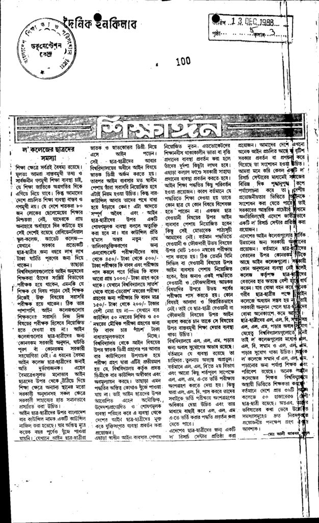 ল’কলেজের ছাত্রদের সমস্যা