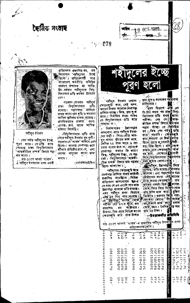 শহীদুলের ইচ্ছে পূরণ হলো