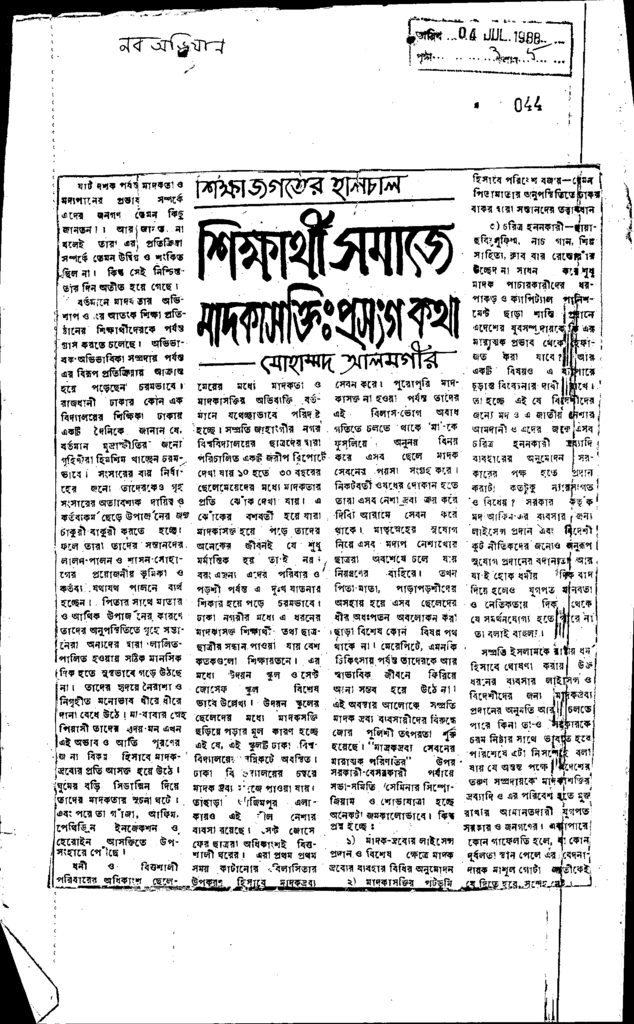 শিক্ষার্থী সমাজে মাদকাসক্তিঃ প্রসংগ কথা