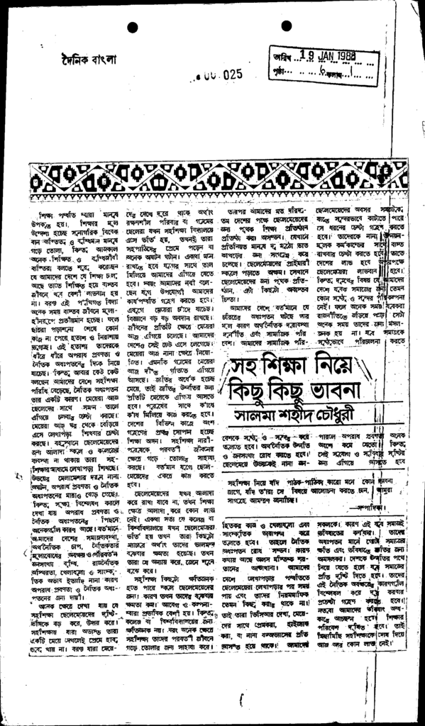 সহ শিক্ষা নিয়ে কিছু কিছু ভাবনা Published on Newspaper দৈনিক বাংলা Category Admission / Seat Problem Admission/Seat Problem Download