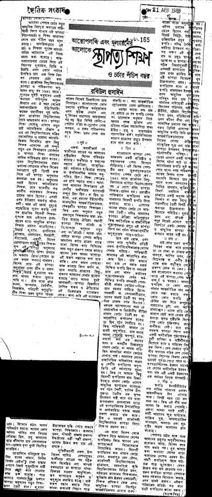 স্থাপত্য শিক্ষা Published on Newspaper দৈনিক সংবাদ Category Admission / Seat Problem Admission/Seat Problem Download