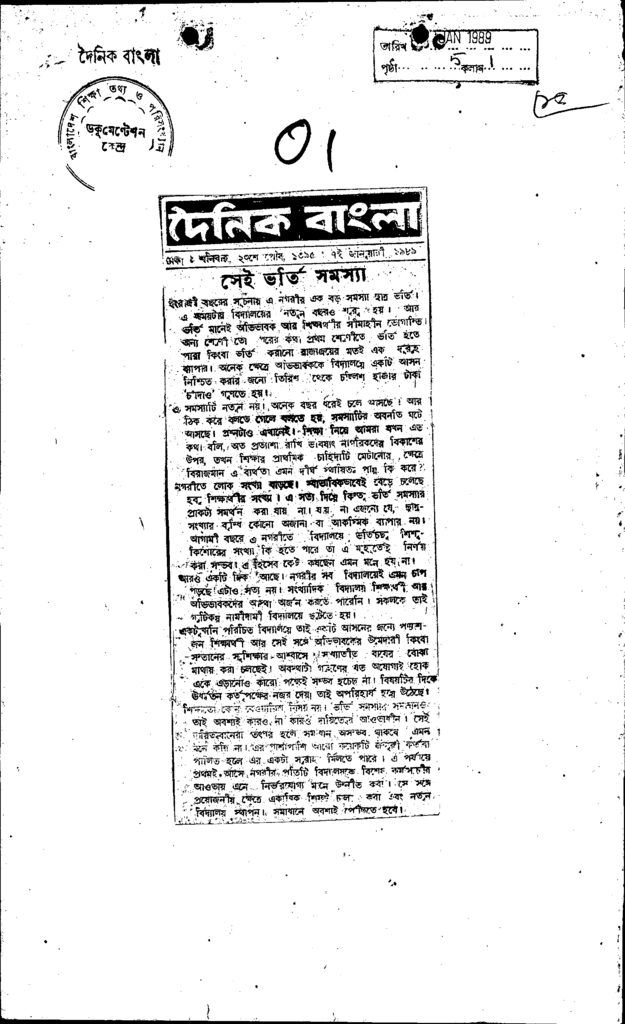 সেই ভর্তি সমস্যা Published on Newspaper দৈনিক বাংলা Category Admission / Seat Problem Admission/Seat Problem Download