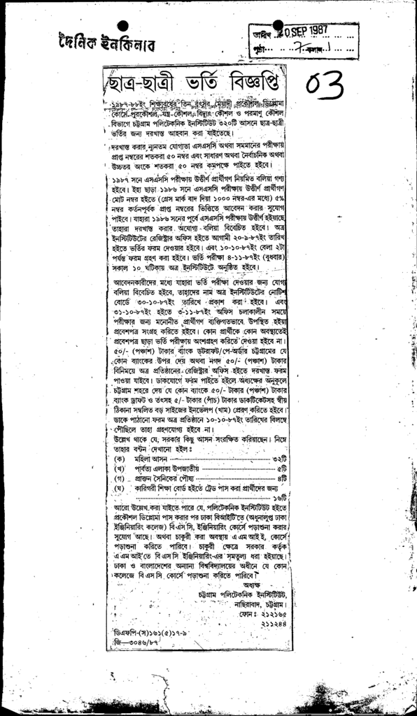 Ministry if education Published on Newspaper The Bangladesh Times Category Admission / Seat Problem Download
