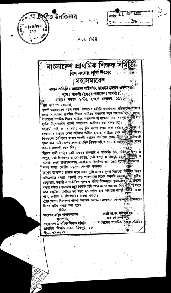 বাংলাদেশ প্রাথমিক শিক্ষক সমিতি মহাসমাবেশ Published on Newspaper দৈনিক ইনকিলাব Category Admission / Seat Problem Download