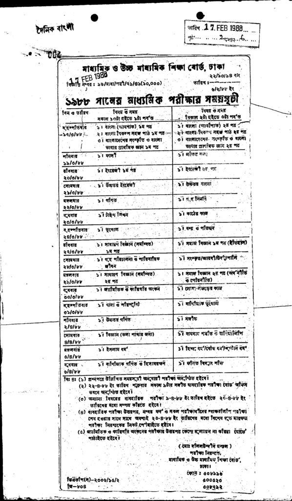 মাধ্যমিক ও উচ্চ মাধ্যমিক শিক্ষা বোর্ড ঢাকা Published on Newspaper দৈনিক বাংলা Category Admission / Seat Problem Download