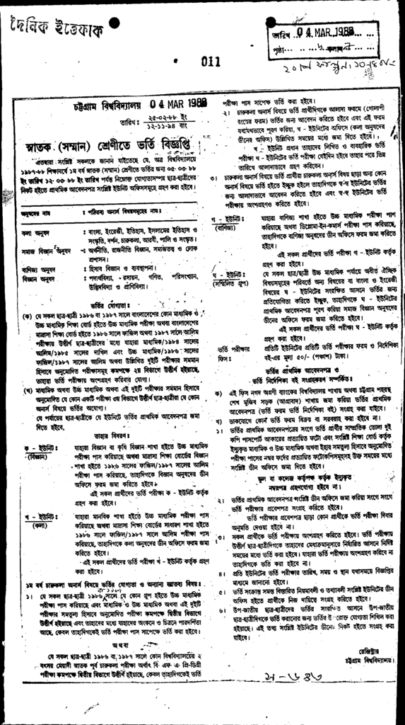 স্নাতক (সম্মান) শ্রেণীতে ভর্তি বিজ্ঞপ্তি