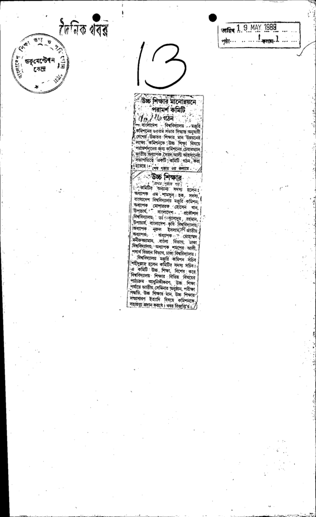 উচ্চ শিক্ষার মানোয়নে পরামর্শ কমিটি গঠন Published on Newspaper দৈনিক খবর Category Admission / Seat Problem Download