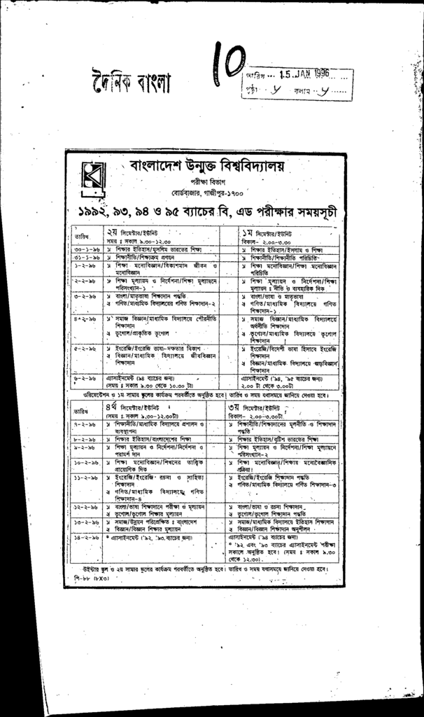 বাংলাদেশ ইন্মুক্ত বিশ্ববিদ্যালয় Published on Newspaper দৈনিক বাংলা Category Technical and Vocational Education Download