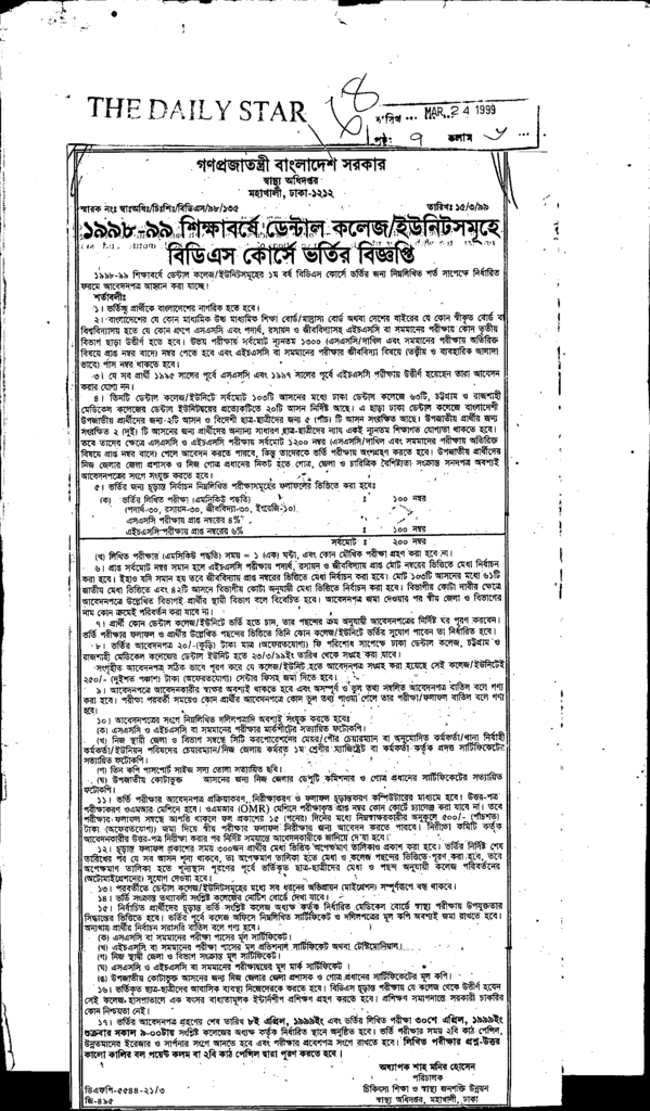 গনপ্রজাতন্ত্রী বাংলাদেশ সরকার Published on Newspaper The Daily Star Category Admission / Seat Problem Download