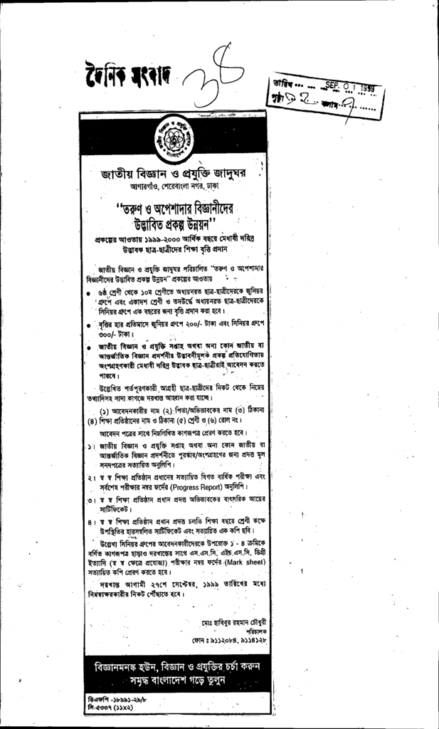 তরুণ ও অপেশাদার বিজ্ঞনীদের উদ্ভাবিত প্রকল্প উন্নয়ন Published on Newspaper দৈনিক সংবাদ Category Professional Education Professional Education Engineering Download