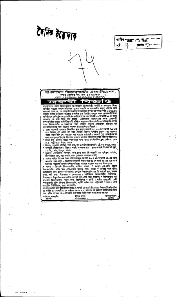 বাংলাদেশ কিন্ডার গার্টেন এসোসিয়েশন জরুরি বিজ্ঞপ্তি Published on Newspaper দৈনিক ইত্তেফাক Category Child Education Download