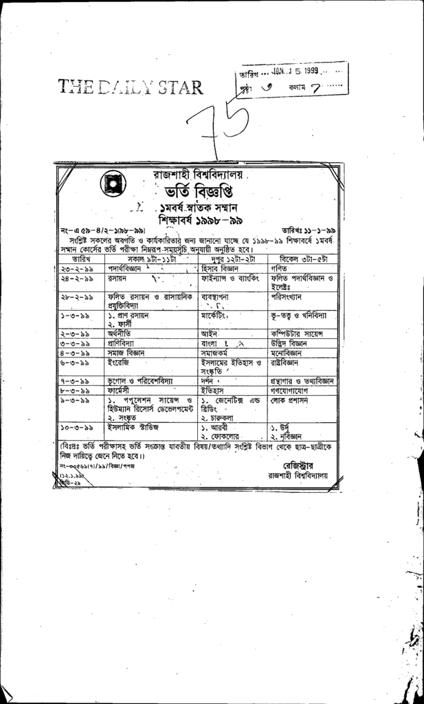 রাজশাহী বিশ্ববিদ্যালয় ভতি বিজ্ঞপ্তি Published on Newspaper The Daily Star Category Education Policy / Education Commission Download