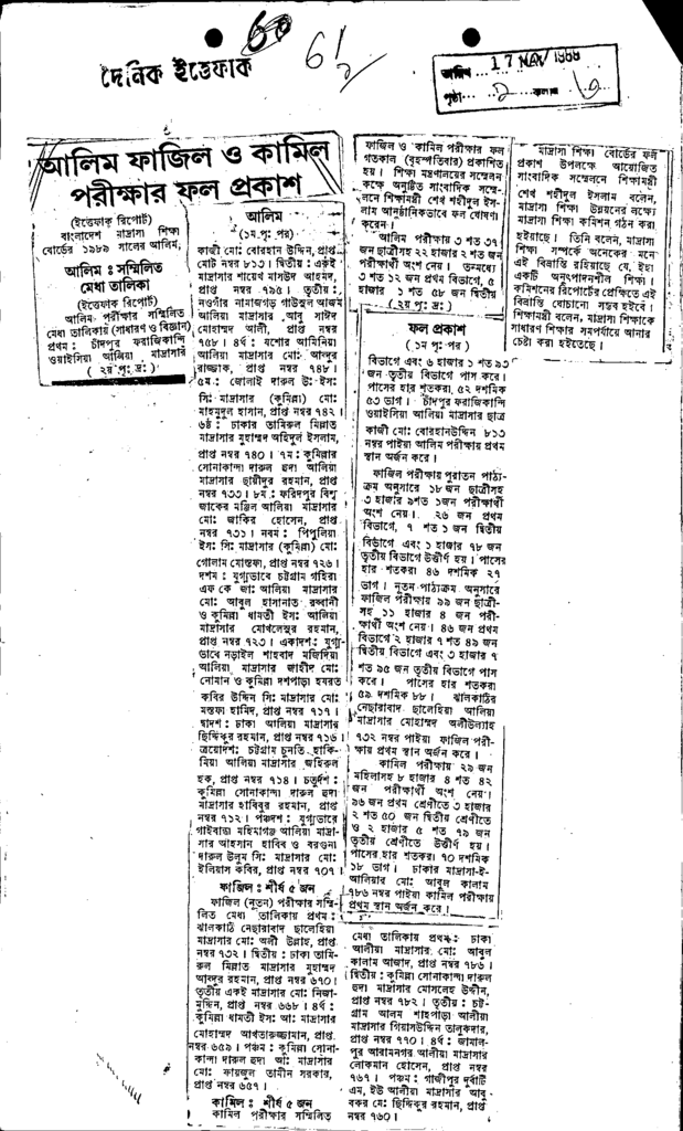 আলিম ফাজিল ও কামিল পরীক্ষার ফল প্রকাশ Published on Newspaper দৈনিক ইত্তেফাক Category Madrasah Education Madrasah Education Alia Download
