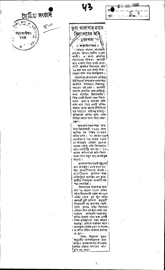 ভুয়া মাদ্রাসার নামে বিদ্যালয়ের জমি বেদখল Published on Newspaper দৈনিক সংবাদ Category Madrasah Education Madrasah Education Alia Download