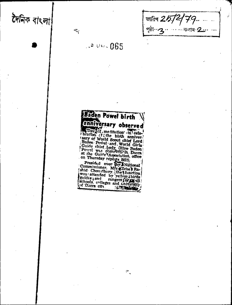 Baden powel birth anniversary observed Published on Newspaper দৈনিক বাংলা Category General Education Download