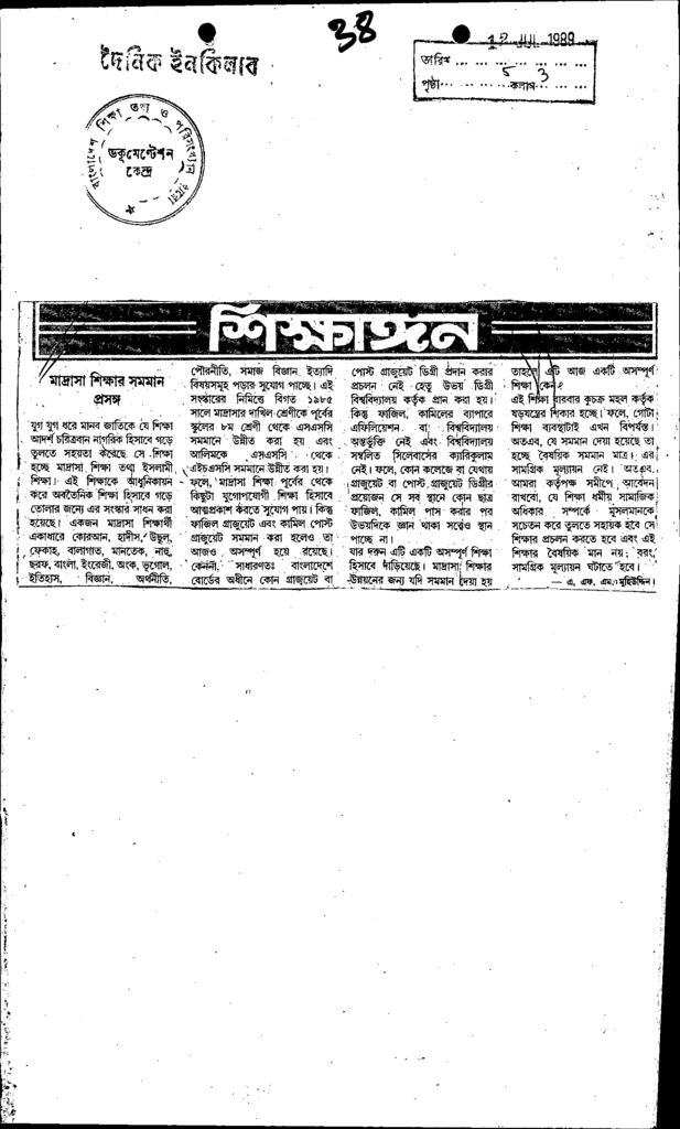 মাদ্রাসা শিক্ষার সমমান প্রসঙ্গ