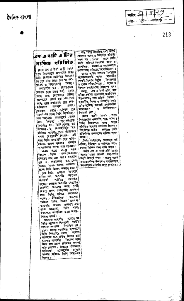 িএস এ বারী এটির সংক্ষিপ্ত পরিচিতি Published on Newspaper দৈনিক বাংলা Category General Education Download