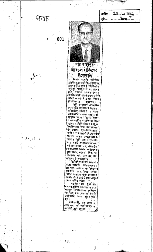 খান বাহদুর আবদুল হাকিমের ইন্তেকাল Published on Newspaper দৈনিক সংবাদ Category General Education Download