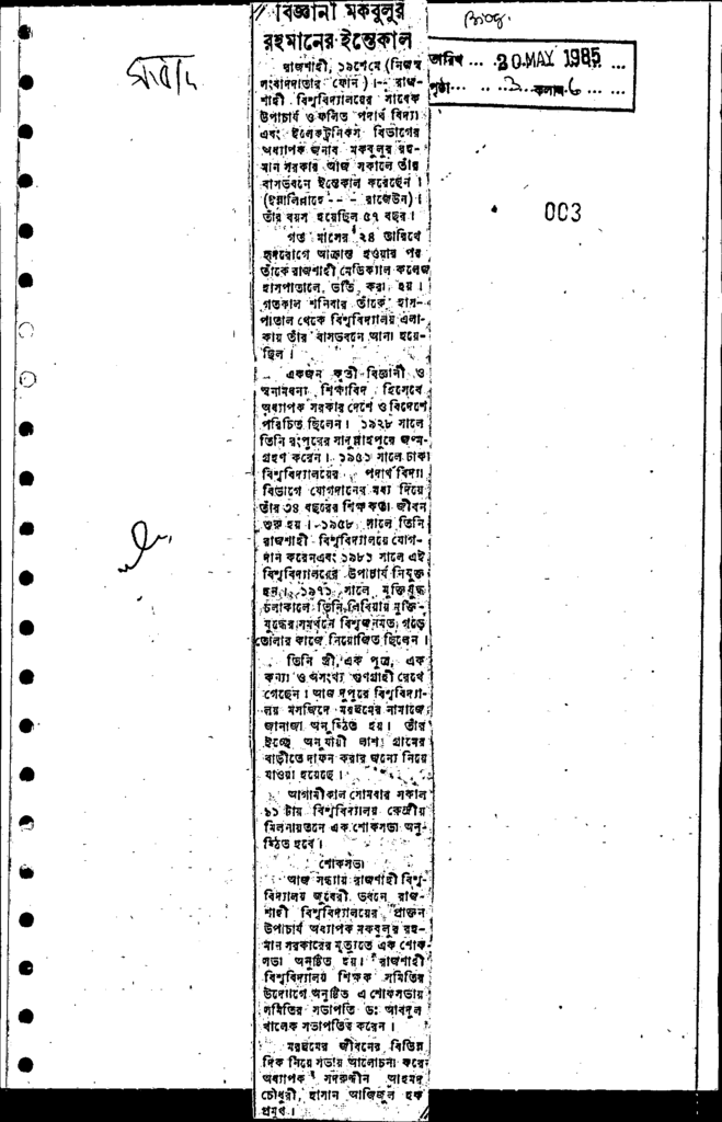 বিজ্ঞানী মকবুলুর রহমানের ইন্তেকাল Published on Newspaper দৈনিক সংবাদ Category General Education Download