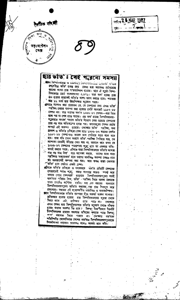 ছাত্রভর্তিঃ সেই পুরনো সমস্যা Published on Newspaper দৈনিক বাংলা Category Admission / Seat Problem Admission/Seat Problem Download