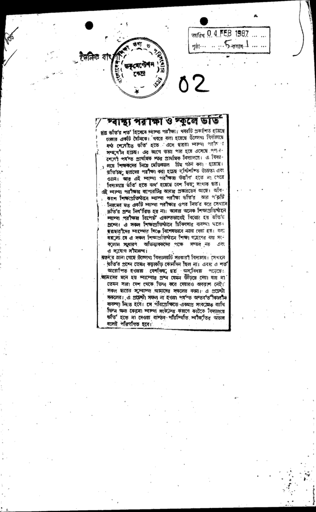 স্বস্থ্য পরীক্ষা ও স্কুলে ভর্তি Published on Newspaper দৈনিক বাংলা Category Admission / Seat Problem Admission/Seat Problem Download