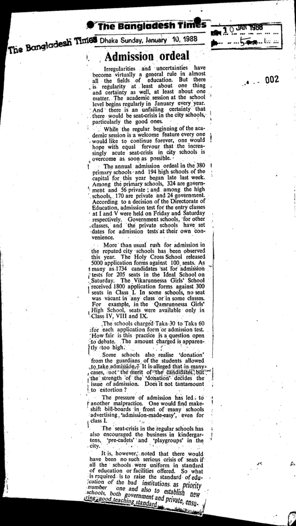 Admission ordeal Published on Newspaper The Bangladesh Times Category Admission / Seat Problem Admission/Seat Problem Download