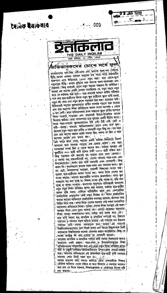 অভিভাবকদের চোখে সর্ষে ফুল Published on Newspaper দৈনিক ইনকিলাব Category Admission / Seat Problem Admission/Seat Problem Download