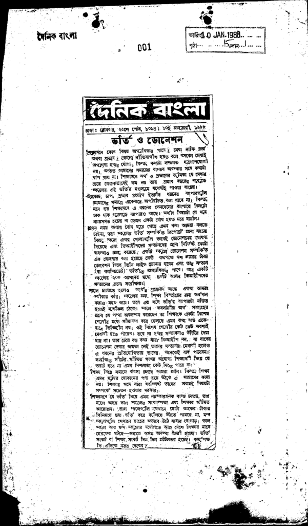 ভর্তি ও ডোনেশন Published on Newspaper দৈনিক বাংলা Category Admission / Seat Problem Admission/Seat Problem Download