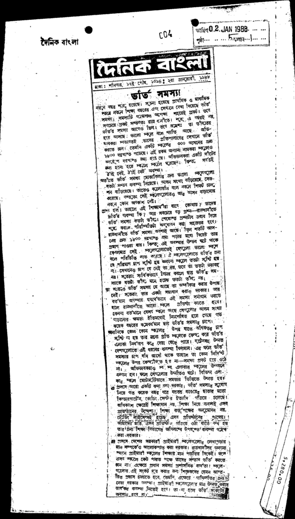 ভর্তি সমস্যা Published on Newspaper দৈনিক বাংলা Category Admission / Seat Problem Admission/Seat Problem Download