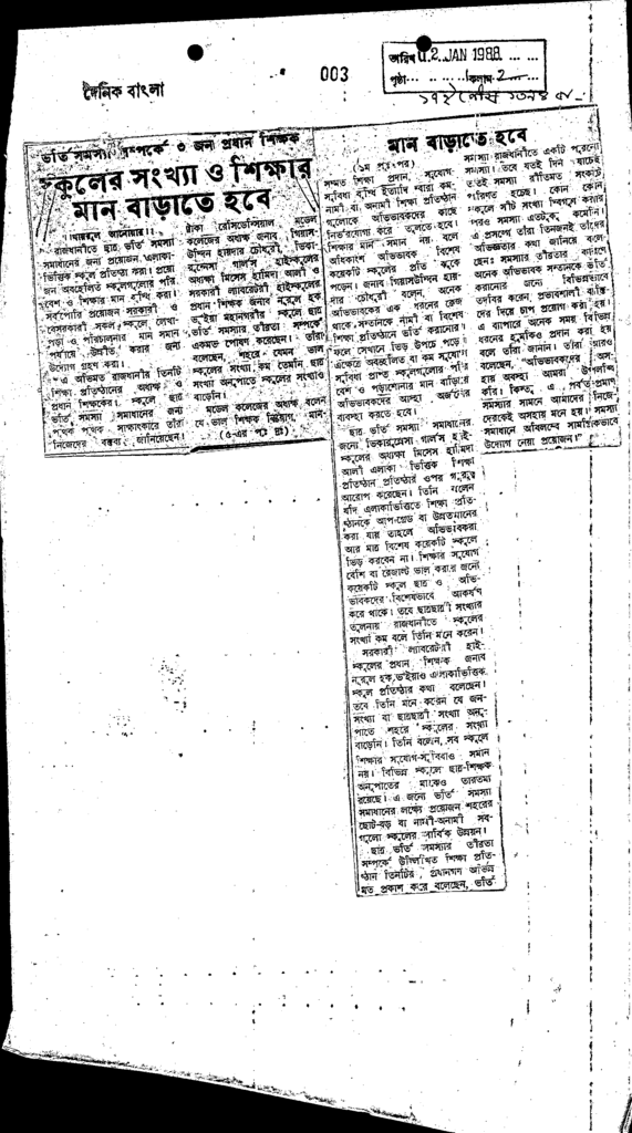 স্কুলের সংখ্যা ও শিক্ষার মান বাড়াতে হবে Published on Newspaper দৈনিক বাংলা Category Admission / Seat Problem Admission/Seat Problem Download