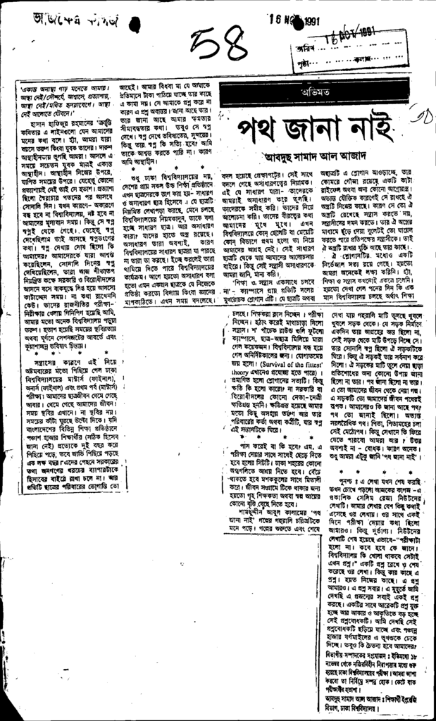 পথ জানা নাই Published on Newspaper দৈনিক আজকের কাগজ Category Admission / Seat Problem Admission/Seat Problem Download