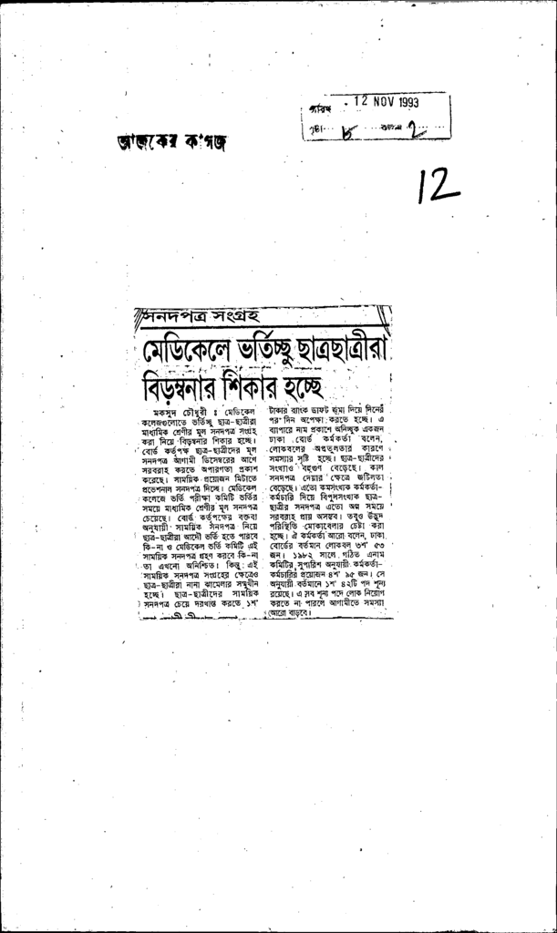 মেডিকেলে ভর্তিচ্ছু ছাত্রছাত্রীরা Published on Newspaper দৈনিক আজকের কাগজ Category Admission / Seat Problem Admission/Seat Problem Download