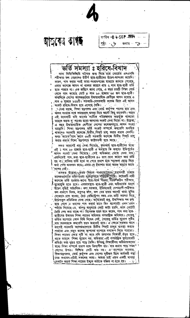 ভর্তি সমস্যাঃহরিষে-বিষাদ Published on Newspaper দৈনিক আজকের কাগজ Category Admission / Seat Problem Admission/Seat Problem Download