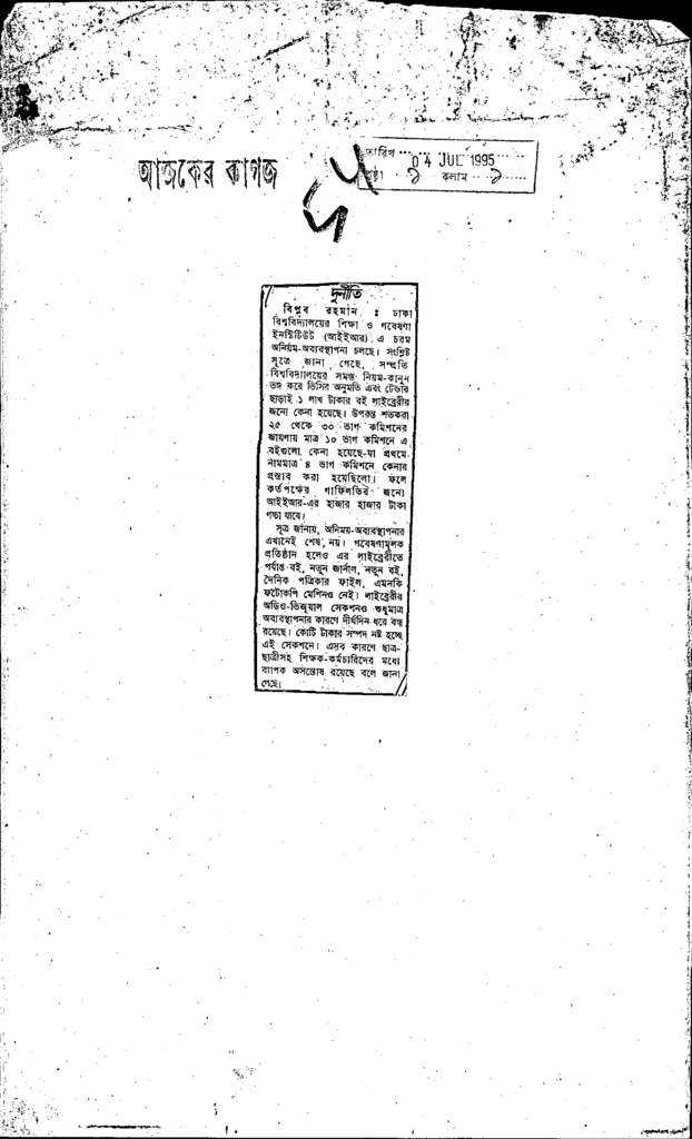 দুর্নীতি Published on Newspaper দৈনিক আজকের কাগজ Category Admission / Seat Problem Admission/Seat Problem Download