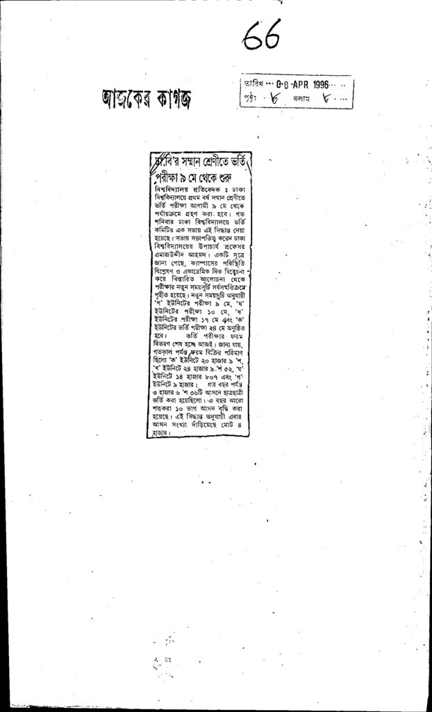 ঢা.বি’র সম্মান শ্রেণীতে ভর্তি পরীক্ষা ৯ মে থেকে শুরু Published on Newspaper দৈনিক আজকের কাগজ Category Admission / Seat Problem Admission/Seat Problem Download