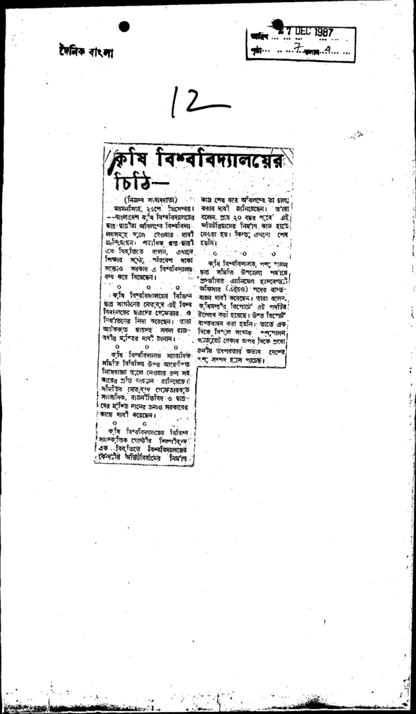 কৃষি বিশ্ববিদ্যালয়ের চিঠি Published on Newspaper দৈনিক বাংলা Category General Education General Education Higher Education Public Download