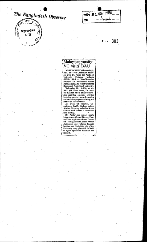 Malaysian varsity v-c visits bau Published on Newspaper The Bangladesh Observer Category General Education General Education Higher Education Public Download