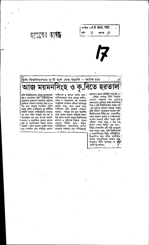 আজ ময়মনসিংহ ও কৃ.বিতে হরতাল Published on Newspaper দৈনিক আজকের কাগজ Category General Education General Education Higher Education Public Download