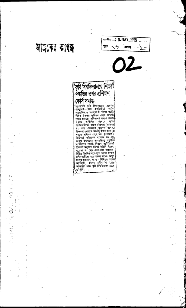 কৃষি বিশ্ববিদ্যালয়ে শিক্ষা পদ্ধতির ওপর প্রশিক্ষণ কোর্স সমাপ্ত Published on Newspaper দৈনিক আজকের কাগজ Category General Education General Education Higher Education Public Download