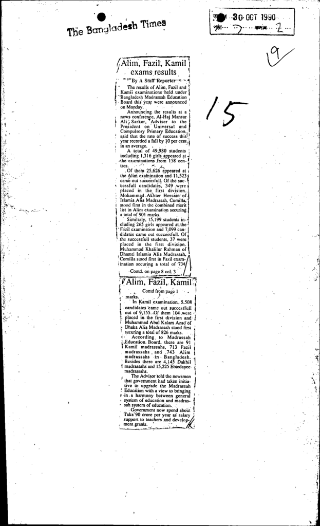 Alim, fazil, kamil exams results Published on Newspaper The Bangladesh Times Category Madrasah Education Madrasah Education Alia Download