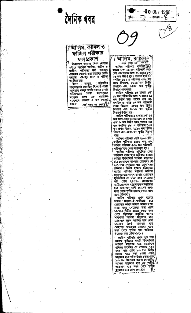 আলিম, কামিল ও ফাজিল পরীক্ষার ফল প্রকাশ Published on Newspaper দৈনিক খবর Category Madrasah Education Madrasah Education Alia Download