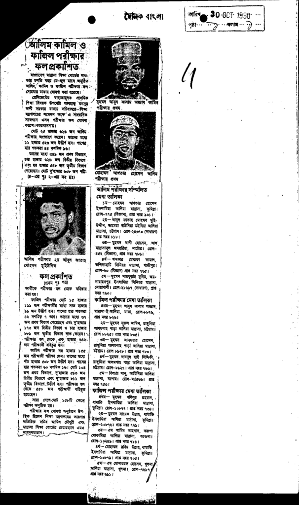 আলিম, কামিল ও ফাজিল পরীক্ষার ফল প্রকাশিত Published on Newspaper দৈনিক বাংলা Category Madrasah Education Madrasah Education Alia Download