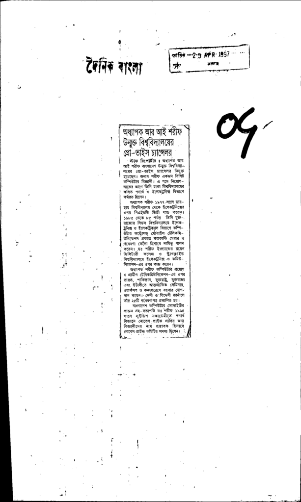অধ্যাপক আর আই শরীফ উন্মুক্ত বিশ্ববিদ্যালয়ের প্রো-ভাইস চ্যান্সেলর Published on Newspaper দৈনিক বাংলা Category General Education General Education Higher Education Public Download